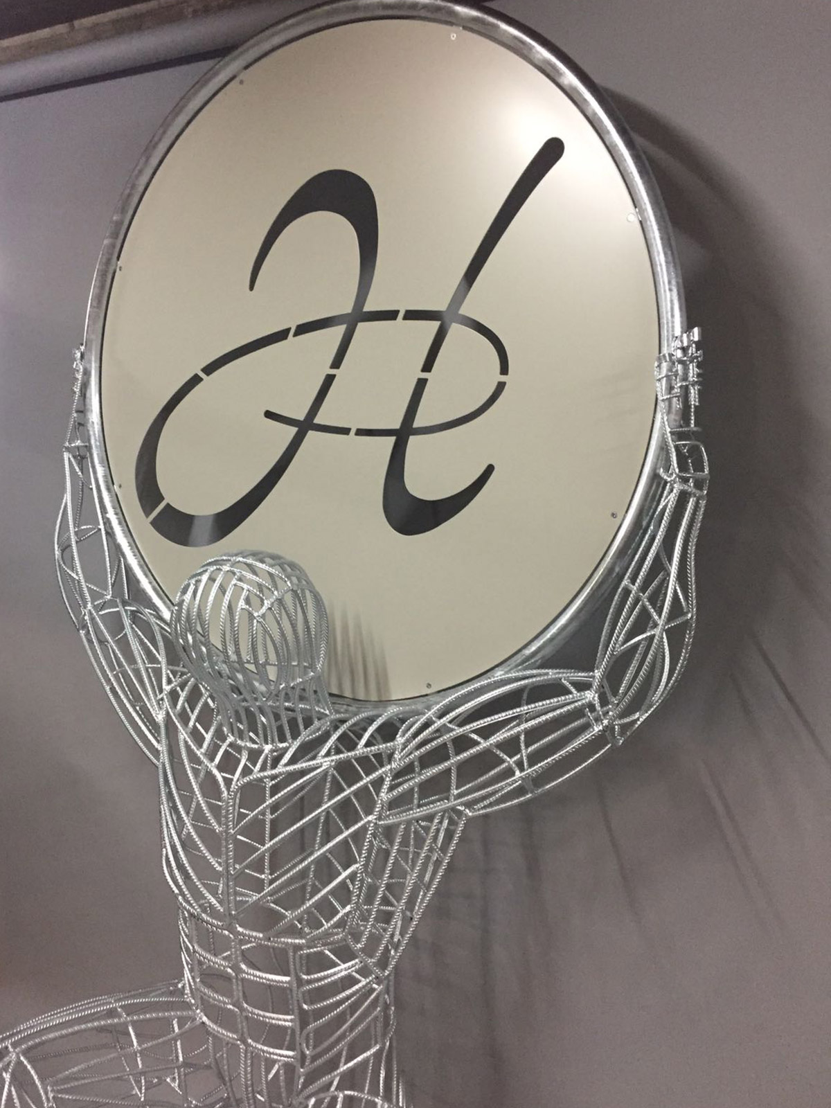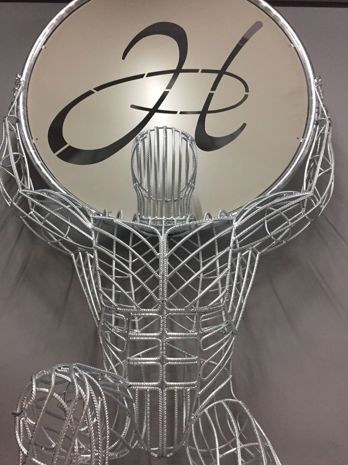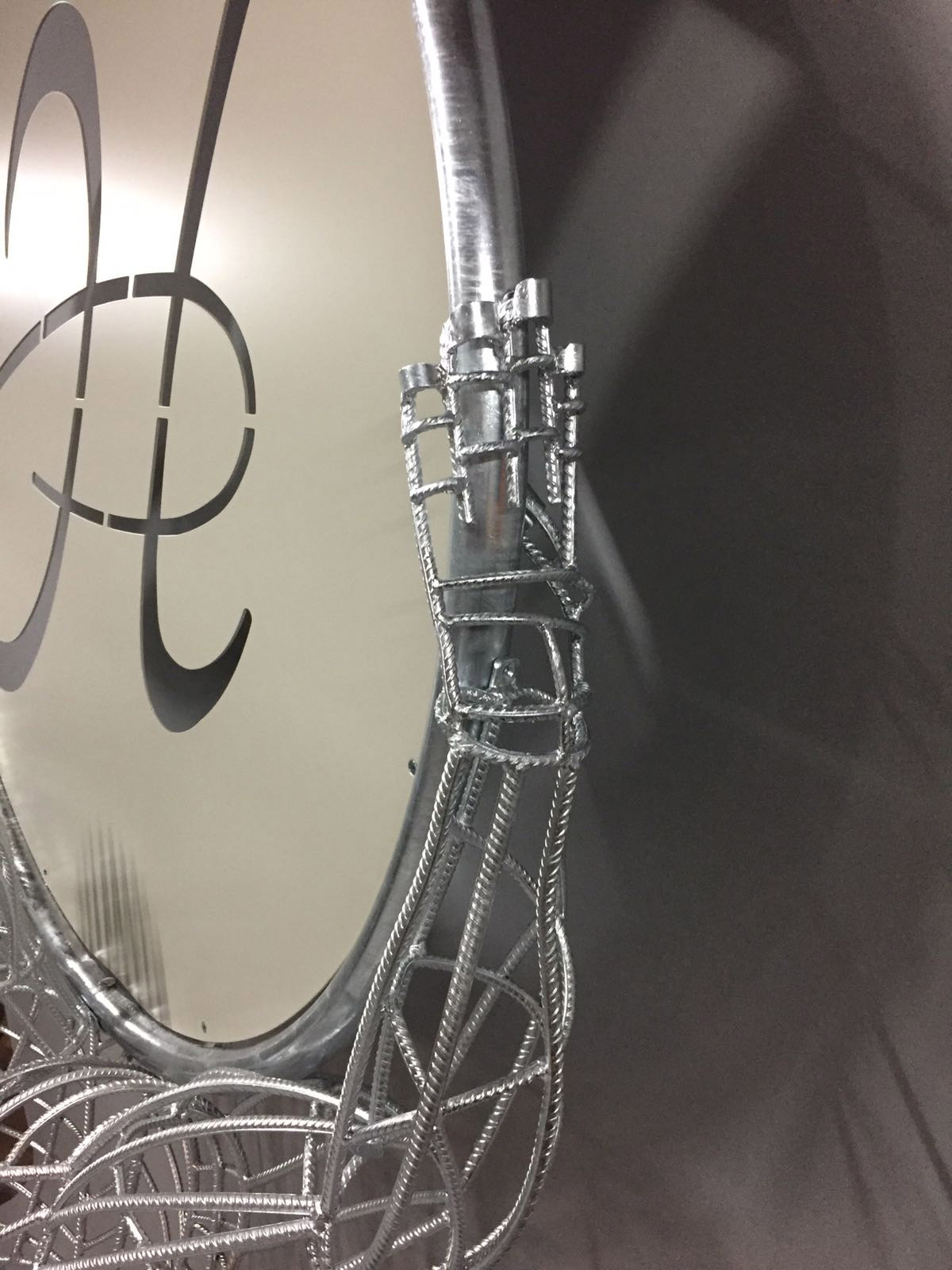 Der Begriff Gabione leitet sich vom römischen Wort für Käfig ab. Ein Geflecht von Rundstahl umgibt die einzelnen Kugeln wie ein Korsett. Im Inneren verbirgt sich eine elektrische Lichtquelle.